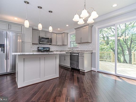 NEW RENOVATION! BEAUTIFUL, PRISTINE, RENOVATED 4BR/2.5 Bath Detached Open-Concept Cape Cod with 3 Finished Levels! New roof, HVAC, plumbing, electric, deck and much more! This bright home with off street parking features gleaming wood floors throughout, a soft paint palette, recessed lighting. Main level features a beautiful open-concept floor plan with a spacious Living Room and Kitchen/Dining Area. Enjoy an elegant gourmet Chef~s Kitchen with white cabinets, stainless steel appliances, an island, granite countertops and a beautiful tile backsplash. PLUS, slider to large NEW REAR DECK great for outdoor entertaining. Fabulous entry-level Master Bedroom with attached master bath and large walk-in closet. The upper level features 2 bedrooms with large closets and a full bath. FALL IN LOVE with the completely finished lower level that features a HUGE media room, Bedroom 4 and a finished separate mud room/laundry room with W/D, ceramic tile and a rear entrance to the back yard. Gorgeous stairs, carpeted upper and lower levels. Mature trees surround large, level front and rear yards creating your oasis, and yet, you're still close to the conveniences of shopping and restaurants and major routes. DON~T WAIT. THIS ONE WILL GO FAST!!