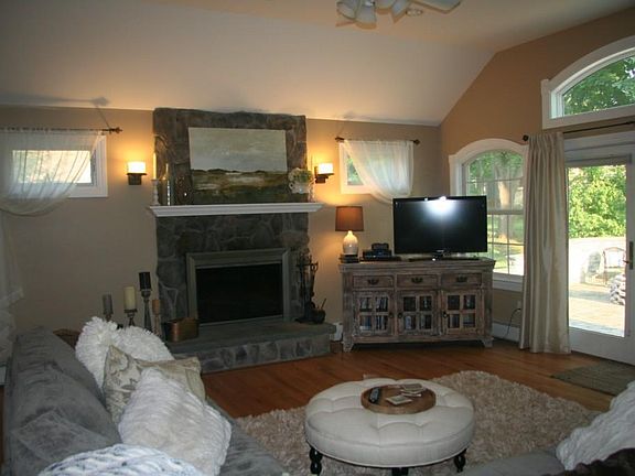 Beautiful home with great floor plan; Large eat in kitchen- granite counters- cabinets galore! Large family room in rear open to kitchen with views to beautiful level back yard and expansive patio...Main floor laundry/dryer hookup; Master suite. and two bedrooms on 1st floor.One car attached garage. Gas heat; central air; 2 working fireplaces. And,location, location, location. This house has it all! Situated in great neighborhood- walk to all in-town amenities Full basement - amazing storage opportunity. Small pets ok. Tenant pays all utilities; maintains lawn and snow /ice, Credit check and references