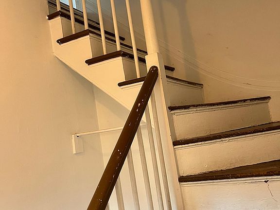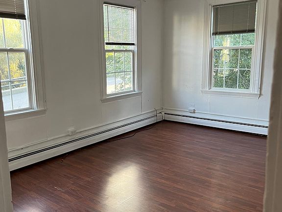 Convenient and lovely location on Oak St, between Washington and Middle, nestled somewhat below street level. Easily walkable to BIW and all of downtown Bath. Almost a private house, just with a quiet neighbor in the one bedroom unit on the first floor. Apartment has a spacious master bedroom on the third floor and two small bedrooms/offices on the second and third floors. Though it could be listed as a three bedroom, we're listing it as a two given how small those two rooms are, but both are suitable for kids or guests. The ample sized kitchen opens onto a full dining room. The living room is very large, as is the full bathroom with laundry. Adornment comes with access to a large outdoor yard around the property, shared with the downstairs neighbors. You will note that a train track runs next to this house. It is not Amtrak or a heavy freight line. Trains are rare and when they do pass they pass very slowly (I live next to the very same line several blocks away). Heat and hot water are tenants' responsibility, and both are provided by a wall mounted condensing boiler which runs on propane. Electricity is also tenants' responsibility. One off-street parking spot is included.