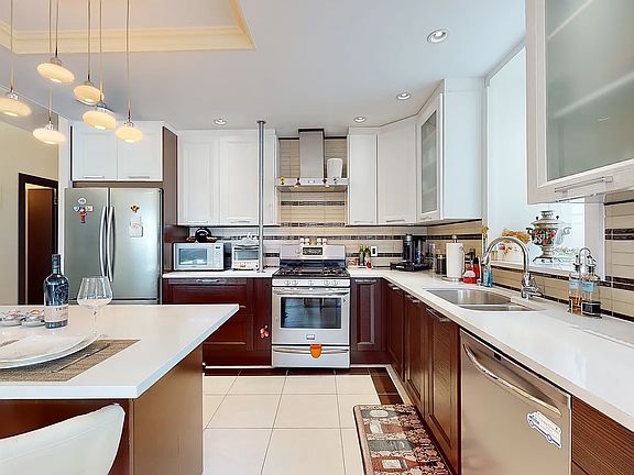 Fully renovated corner unit in the OCEANA Condominiums. Located in a waterfront, gated community in Brighton Beach, this apartment has 3 bedrooms, a separate office room, 2 full baths and a powder room. This spacious 1,757 sq. ft. apartment has been beautifully renovated with top of the line finishes and custom-built closets, including a walk-in closet. The kitchen features a large window, stainless steel appliances, quartz countertops, a large kitchen island and a separate dining area. The primary bedroom has a balcony and an en-suite bathroom with a window, a custom-built Sauna and a large bathtub. Apartment features include hardwood floors, high ceilings, recessed lighting, many closets, two private balconies, upgraded cooling Split system and a Washer/Dryer in the unit. OCEANA Condominiums amenities include a Private Clubhouse & Fitness Center with a Steam room and Sauna, Indoor & Outdoor Pools, Private Beach Access, 24-hour Attended Gatehouse. Near subway lines Q and B, and buses B1, B68.