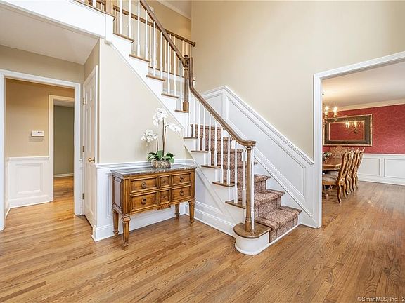 Fabulous Private Location on desirable cul de sac in South Wilton. Open the front door and step into a two story entry with grand staircase and lovely millwork. A spacious formal dining room with crown molding and wainscoting and a light filled living room with fireplace await your gatherings. Separate home office perfect for today's work lifestyle Open concept eat in kitchen/great room is ideal for todays lifestyle. Beautiful custom built ins surround large granite gas fireplace. Kitchen is a chef's dream with gas range, built in fridge with matching panels and warming drawer, Custom paint finish on cabinets and island. Sliders to a large private deck. Fire pit perfect for chilly evenings. Separate home office fits for today's work lifestyle. Upstairs find sunny main bedroom with walk in closet and full bath. Three more generous bedrooms, another full bath and laundry. Sold "As is". Subject to third party approval.