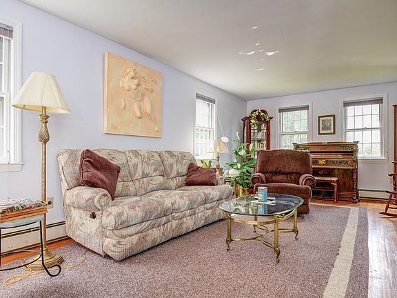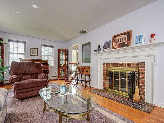 So many extras: AC, hardwood flooring throughout, Fpl and bright glassed in Sun Room! Popular Old Farm Road neighborhood for this 3 BR 2 BA ranch with classic character. Spacious front to back fireplaced Living Room, traditional beamed ceiling and wainscoting detailing in Dining Room with built-ins and in the hickory Kitchen with brick detailing & pellet stove and cozy sitting area with bay window. Master Bedroom has full Bath, 3rd Bedroom/Office has French Doors opening to 3 season Sun Room. In the lower level, there is a finished basement Family Room with laminate flooring and pellet stove, Laundry Room and large Storage Room plus over sized two car Garage! Exterior gardens, sunny patio, storage shed and pellet supply complete the picture for this charming home!