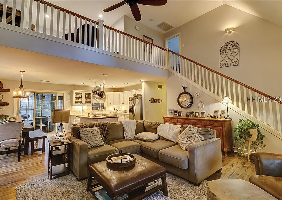 Victoria Bluff is one of Bluffton's most sought after communities surrounded by a nature preserve, located just off island and a short golf cart ride to Colleton River boat ramp. This home offers 4 bedrooms & 3 full baths. The main level has a bright formal great room w/ stainless & granite, dining area, powder room & laundry room as well as 2 bedrooms w/ a shared bath. Upstairs there is a large en-suite master bedroom plus oversized loft. Additional bedroom suite w/ full bath & kitchen is located over 2 car garage. Plus a relaxing front porch ideal for rocking chairs & rear screened porch overlooking the expansive backyard.
