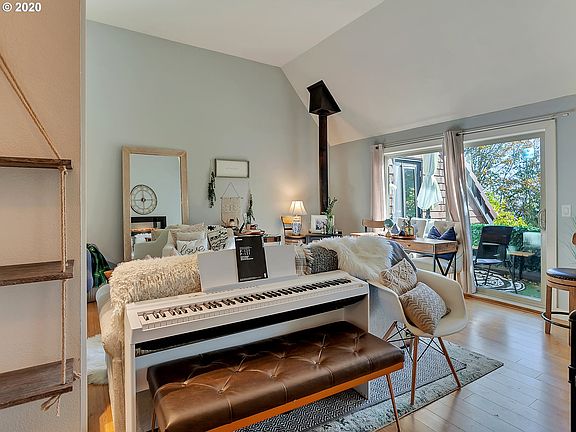 Fantastic top floor end-unit Oswego Summit condo. This beautifully updated unit features soaring vaulted ceilings, a stylishly remodeled gourmet kitchen, bamboo floors, large walk-in closets in both bedrooms, wonderfully updated bathrooms, wood burning stove, a peaceful private deck overlooking trees, and lovely green space. Great location in one of most desirable, and private, spots in the development. Enclosed garage and ample guest parking. Strong HOA and access to abundant MT Park amenities!