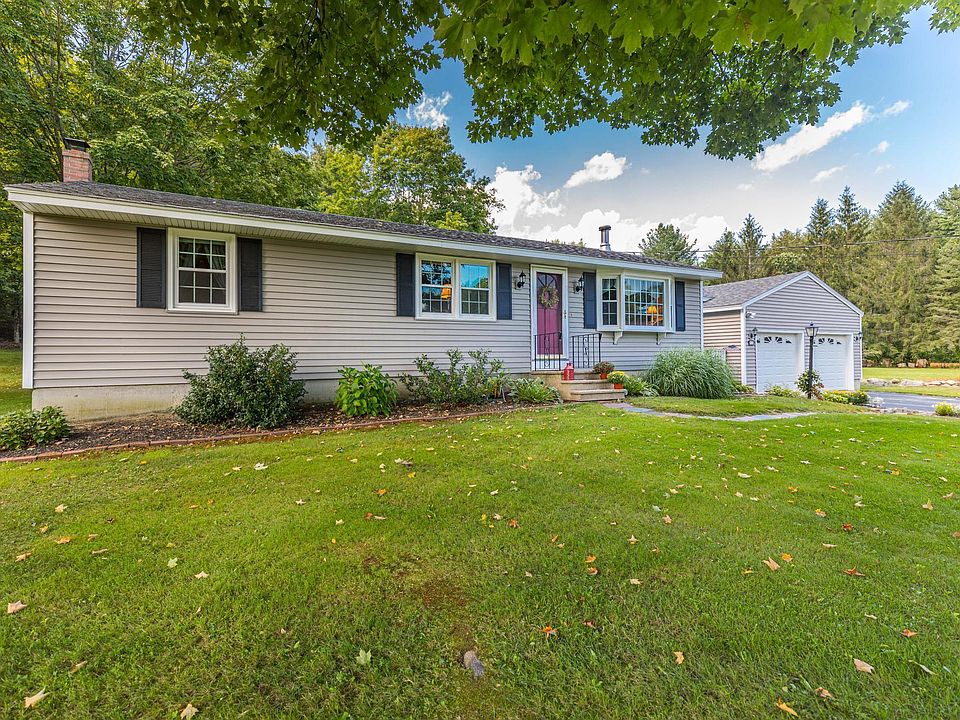 The home you've been looking for - the setting you'll absolutely love! This adorable one-owner ranch has been lovingly cared-for and updated over the years and is ready for you to begin your chapter of homeownership. Property is nicely set back from the road on just over an acre and a half bounded partially by sturdy stone walls. The lot offers a slice of quintessential New England, particularly as the cool evenings begin to turn the leaves into the beautiful colors of fall. The owner mentioned that he planted many of the majestic trees that dot the landscape back when he first purchased the property. Inside you'll find the home has a very nice flow, with a breezeway entry from the garage that leads into the kitchen. Kitchen offers gorgeous granite counters and plenty of cabinets. Picture family gatherings around the table that eventually break off into either the warm living room with woodstove or the spectacular three-season sunroom out back. This focal point of the home offers nothing but light and will make you feel like you're out in the back yard. 3 ample bedrooms and a large full bath round out the rest of the floorplan. Systems have been updated over time and although the property is out of town a bit, it still provides you with city water and sewer. Windows were updated back in 2010 by Window World and come with a reassuring lifetime warranty. Two-car garage and full basement give you loads of storage space. This home is a joy to show and easy to view!