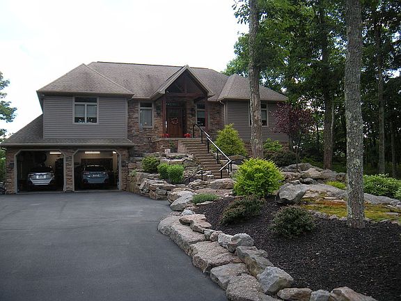 This amazing home has breathtaking views but sits on a level lot with beautiful multi-level natural stone walls and landscaping. Hickory flooring and cabinets on main level. Maintenance free Silestone countertops and large kitchen island that seats 6. All Kenmore Elite appliances. Gas fireplaces on both floors. 4 zone heating with Central AC. Large composite deck with full patio below, Many