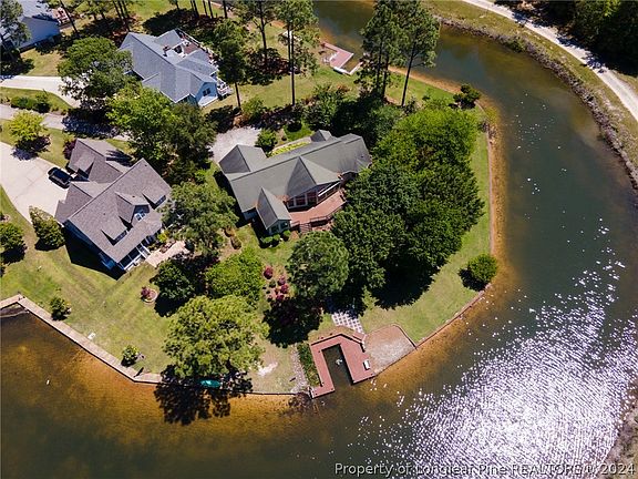 Welcome to your Dream Waterfront Lake House in the gated golf course community of Carolina Lakes! On half an acre you are surrounded by water w/ a boat dock & a long private driveway at the end of the cul-de-sac making for the perfect tranquil & peaceful home! Come into Pebble Beach lake home & experience lush flowers & shade trees as you make your way to the covered front porch. Inside you will find beautiful woodwork and a gorgeous cathedral ceiling with wood beams. Your living room is open to the updated kitchen & breakfast nook with floor to ceiling windows to view the lake anytime you please! The home features a master bedroom w/ walk in closet & master suite with dual vanities, spa tub & huge tiled shower along with 2 spacious guest rooms & a full bath. Completing the home is a sunroom that has more lake views & windows with another entry to the deck & a large laundry room. Oversized 2 car garage. Amenities include beach access, pool, tennis courts, playground, trails & more!