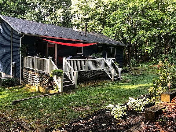 Privately situated Raised Ranch within the hamlet of Tilson has been perfectly maintained and is move-in ready. With close proximity to New Paltz and Rosendale, the location makes this all the more attractive. Long paved driveway leads you into this nicely wooded and fenced in lot, just shy of an acre, for ultimate seclusion and yet convenience. There are three beds and two full baths, with plenty of space throughout. The open floor plan allows for great hosting and a nice modern feel along with the newly added red maple hardwood floors throughout the main living area. The home has a large master bedroom and master bath along with a full finished lower level that includes a wood burning fireplace. Trek deck off the kitchen is perfect for summer BBQs and fall days while enjoying the fully landscaped yard. Some upgrades include newer roof, new well pump, and exterior paint.