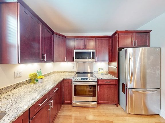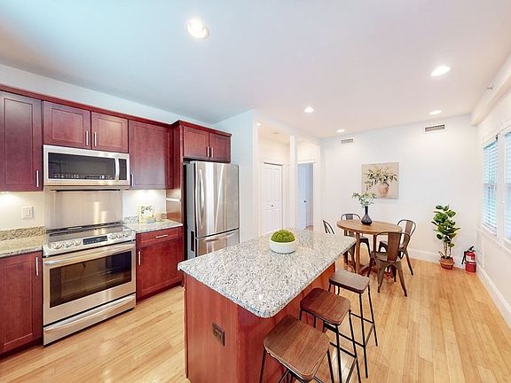Trendy 2 bed 2 bath living in East Somerville! This vibrant condo features an open concept kitchen with stainless steel appliances, granite countertops, cherry cabinets, and a sizable island with abundant storage. This spacious 2nd floor unit also features central air and in-unit laundry. Both large bedrooms impress with walk-in closets and en suite bathrooms. Relax in the living room in the comfort of a fireplace or grab a fall beverage on the private deck. This unit is part of a well-run, pet friendly and fully-owner occupied association and come deeded with 1 garage and 1 off-street parking spot. Just a quick stroll to all of the restaurants and shops that hip East Somerville has to offer along with beautiful local playgrounds and community gardens. Walkable to Sullivan Square Orange Line and incoming East Somerville Green Line trains, Assembly Square, Union Square, and Bow Market.