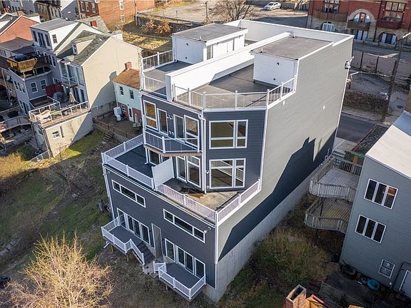 South Side new construction with 3,000 + square feet, 4 levels of outdoor space & spectacular city views. Built from the ground up, not a rehab! First level includes 2-3 car (heated & plumbed) tandem garage with storage/room for workshop. Large walk-out basement below has full bath and in-law suite possibility with yard access, patio & separate entrance. Main level features full bed/bath + open living/dining/kitchen area with gas fireplace, large deck facing the city skyline, and upgraded kitchen with granite countertops, gas cooking, and high-end appliances. Second level features second full bed/bath + master suite with private balcony, jetted tub, tiled shower and walk-in closet. Above sits a large rooftop deck with stunning views of the city and ready-to-go plumbing for a rooftop kitchen. Best combination of size, views and parking in the South Side!! City steps give you quick access to South Side amenities, and quiet location gives you privacy.