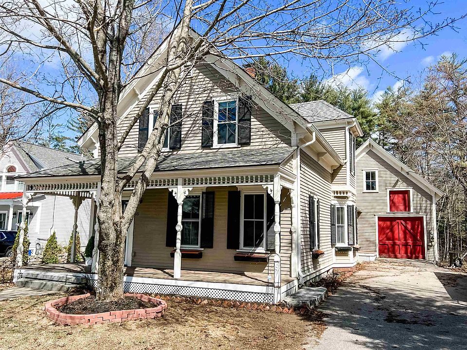 This New England Farm House has 4 Bedrooms and 3 Bathrooms and is located on a very desired street in Conway Village! Entertaining is easy with a bright open concept first floor kitchen/dining/living, den with fireplace and bathroom. Upstairs has 4 bedrooms and 2 baths which includes a Primary Suite. Westerly & Northerly facing porches and a 3 level barn with direct entry. Great back yard. Many newer updates and modern conveniences. Public Water & Sewer and Sidewalks to the Library, Elementary School, Middle School, Ice Arena, Restaurants, Post Office, Davis Park for tennis, basketball and swimming in the Saco River. A great base location to get to North Conway, Maine and more! The perfect vacation destination or primary home!