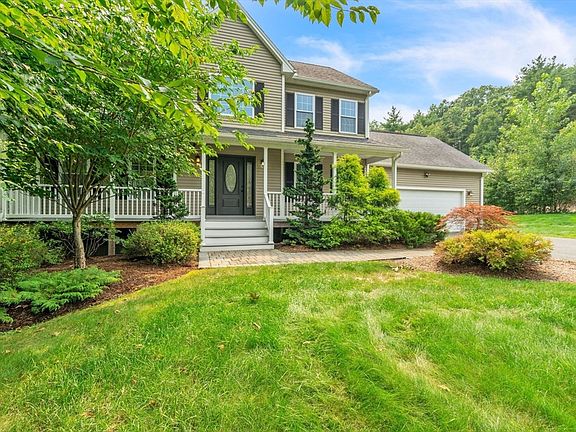 Custom built Contemporary Colonial in quiet neighborhood on1.27 Acre landscaped yard. Private setting with easy access to all commuter routes and center of town. Built under the energy efficient building code and the addition of Owned Solar Panels combine to give you welcome savings, even if you drive an electric powered auto! Features you will appreciate: Maple Hardwood Floors, open floor plan on first floor with country kitchen and family room, formal dining room and great room, half bath and first floor laundry, upstairs 3 bedrooms, 2 full baths, main bedroom with full bath, walk-in closet and nook for office or exercise area, generous size additional bedrooms, and in the walk-out basement a large game room and half bath. Extras you will appreciate: on demand hot water, sprinkler system for lawn, paved drive with turnaround, front Farmer's porch and large back deck, all low maintenance vinyl siding and composite deck and porch. You don't want to miss this one!