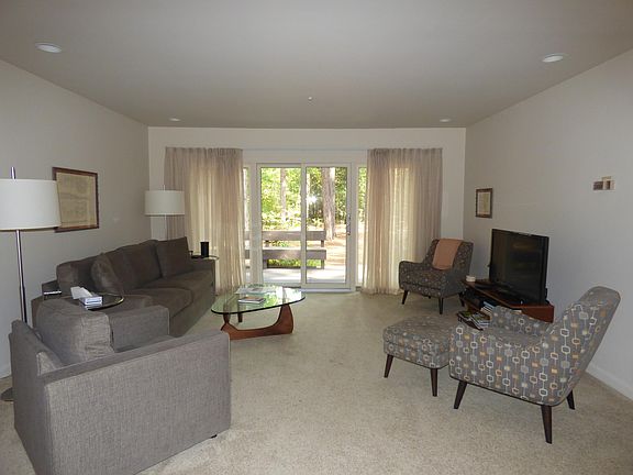 Wonderful second home or vacation/rental property. Perfect for golf groups or family stays with 4 large bedrooms each with two queen beds and on suite bath. Center living area has lots of windows, open eating and game space and access to large deck overlooking heavily wooden private lot. Easy maintenance yard with pine straw and plenty pines. All furniture and appliances included in the purchase price.