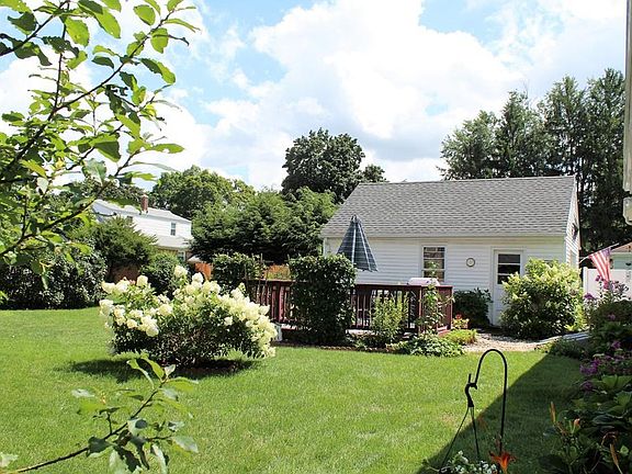 This beautiful Cape Cod style home with a 1 car detached garage has been lovingly maintained. Many recent upgrades and improvements including newer Well McClain Boiler (2009), newer roof (2011), front door & storm doors. The enclosed 3-season porch makes for an inviting entry into the home. The Eat-in Country Kitchen has been completely remodeled (2014) with newer cabinets, Quartz Countertop, tiled backsplash and all of the appliances remain for buyer enjoyment. Hardwood flooring throughout the house. The large living room offers a chair rail, ceiling fan and a wood pellet stove. Nice sized first floor master bedroom and the 2nd bedroom on 1st floor offers a Laundry area (washer and dryer to remain). The 2nd floor offers 2 large bedrooms with ample closet space and storage space. Enjoy the beautiful back yard with lush landscaping and garden area while sitting on the deck. Great location, close to area amenities and major highways great for commuters.