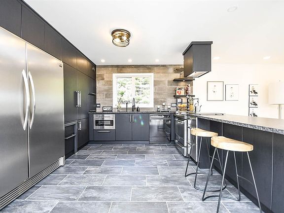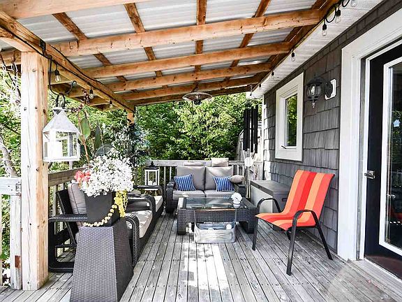 Oceanfront living at its finest! This contemporary designed home over looks beautiful Prospect Bay with 100ft of ocean frontage right across the street with your own water wharf. This beautiful home has large expansive windows in the front to take in the gorgeous view from the front of the house and deck. The chefs dream kitchen has been updated with sleek cabinets, granite countertops with chiseled edge, concrete backsplash, pot filler & unique storage opportunities. Updated appliances include large fridge with stand up freezer, microwave drawer, slide in range with hidden range hood. Open concept kitchen, living, dining while taking in the breathtaking bay views is perfect for entertaining. Large bedroom and full bath on this level also. Up the stunning hardwood & glass staircase you will find your master bedroom where you will wake to the view. Large bathroom has jet tub and shower and another large bedroom on this level. Lower level has a great family room space with heat pump, den, utility with storage and walkout to the yard. Double detached 25 x 30 garage with loft complete this property.