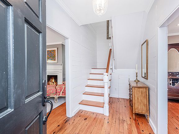 This beautifully renovated Charleston Single home with double piazzas was built in 1872 and is the perfect blend of original architecture and modern amenities. This home has just been painted and has numerous upgrades including stainless appliances, tankless water heater, and fully updated bathrooms. The original fireplaces, flooring, windows, and shiplap add loads of character to each room and they pair flawlessly with the neutral colors and modern furniture. As you enter the home you are greeted by a large, inviting living room with working gas fireplace. To the right is a gracious dining room with a working gas fireplace, a fully renovated kitchen, a half bath and washer/dryer access. Moving upstairs you have the primary bedroom with en suite bath, huge second bedroom, full... bathroom and access to 2nd floor piazza. There is also a pull down attic with plenty of storage at the top of the landing.