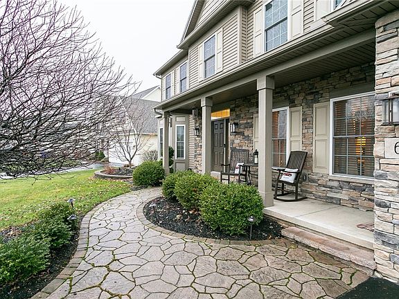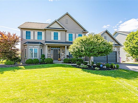 LOOK NO FURTHER! STUNNING 4 bedroom, 2 ½ bath Alaimo built colonial in wonderful Greece subdivision. A custom paver walkway and mature landscaping welcomes you to this lovely property! Den/Library area with cherry hardwood floors & picture frame molding. Office with bay window & French doors leading into Family Room. Family Room features gas fireplace with custom wood accent wall and opens to the eat-in Kitchen. SPACIOUS chef’s Kitchen with cherry cabinetry, granite counters & tile flooring. Walk-in Pantry. Breakfast Room with coffered ceiling & sliding glass door to back yard. 1st floor laundry room & powder room complete the first floor. Primary Bedroom features walk-in closet and en suite bath. Primary bath has a walk-in tiled shower, whirlpool tub and double sink vanity. Three great sized bedrooms, all with double closets. Newer carpeting & paint. 2.5 car garage is insulated & heated w/sink. VACATION AT HOME with the beautiful heated inground pool & hot tub! Relax under the gorgeous covered patio with wood ceiling & porcelain tile floor. Fully fenced yard. Open House Saturday 1/7: 12:00-2:00 pm and Sunday 1/8: 11:00-1:00 pm. Delayed Negotiations on 1/12 at 6:00 pm