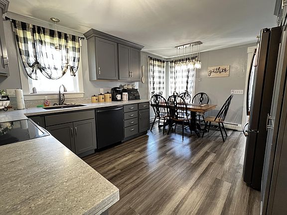 This quaint North Berwick ranch style home has recently been tastefully updated. A heated breezeway bridges the 2 car attached garage to the home. The eat-in kitchen features new laminate flooring, updated lighting fixtures, new cabinets, Corian countertops and a new appliance suite. Large living room features oak floor and plenty of windows for great natural light. There is a laundry closet in the living room that can house stackable laundry and allow for single floor living. An additional laundry area is located in the basement. Full updated bathroom has tile, a large tub and linen closet. 2 bedrooms on this level both feature wood flooring, closets and fan/light combos. The basement has been partially finished to include an office, a large family room and a 3/4 bathroom. This basement level has laminate flooring and is heated. There are so many updates to this house- including whole house automatic generator, new well, septic, doors, windows, siding and roof. The basement even features a separate ''fallout shelter'' room! A back deck gets a generous amount of sunshine. There is even a pad poured and ready for you to bring a hot tub. Separate 4 car detached garage (3 doors, but 4 spaces) provides many possibilities for a home mechanic/handyman or to support your business. Power is onsite but currently not hooked up to that building. Please check zoning regulations for business possibilities.