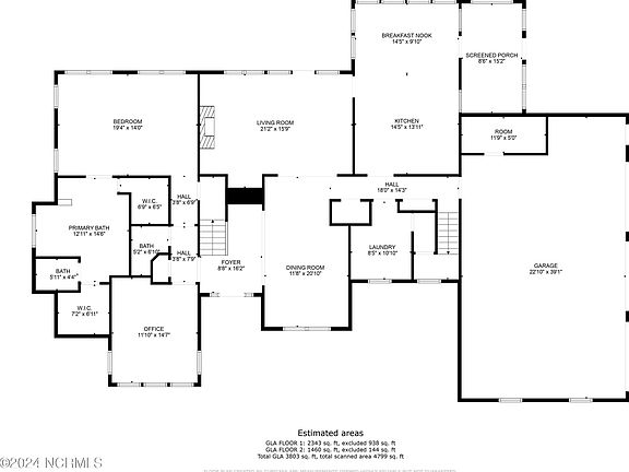 and in office. First floor primary bedroom has vaulted ceiling and two walk-in closets. Front and rear staircases to second floor. Private backyard offers a serene retreat you can enjoy from large back deck.