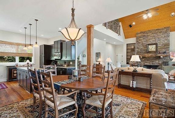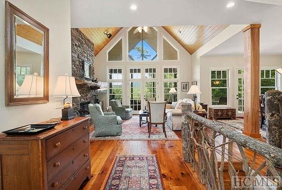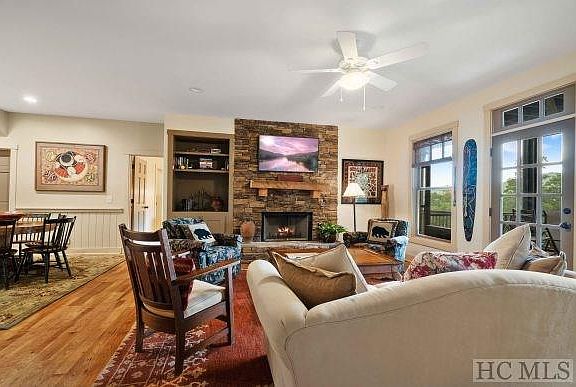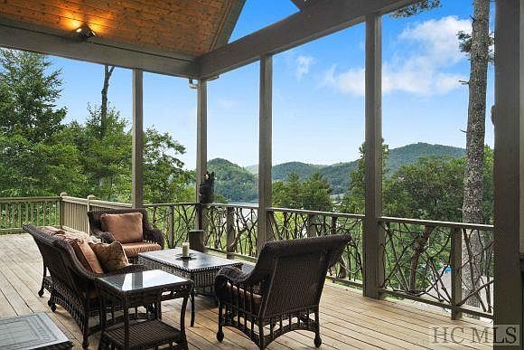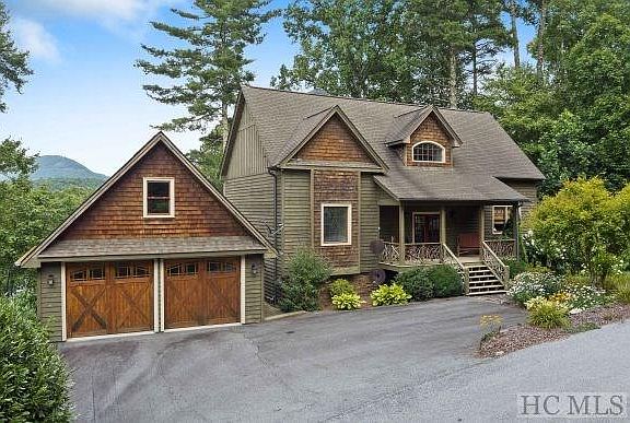 Room for a large clan! Relaxing with friends at the lake will become your new favorite pastime. Beautiful 5/5.5 home in Trillium Village on Rendezvous Ridge overlooking Lake Glenville with lots of well thought out spaces. Five full en suite bedrooms with walk-in closets: Master on main, plus two up and another two down. Open main living area with a separate dining room near the modern kitchen. Large stone fireplace (wood burning with gas starter) in cathedral living room opens onto a wrap around multi-use porch (open, covered and screened areas + radiant heaters for those cool fall nights) Lower level can be closed off as a self contained residence or rental with its own full kitchen, a large family room, a separate entrance and a large entertainment area porch. Lots of parking with two garages plus parking for four more vehicles. CLUB MEMBERSHIP IS NOT REQUIRED, but for those interested, it is available for an additional fee. This community has fiber optics.