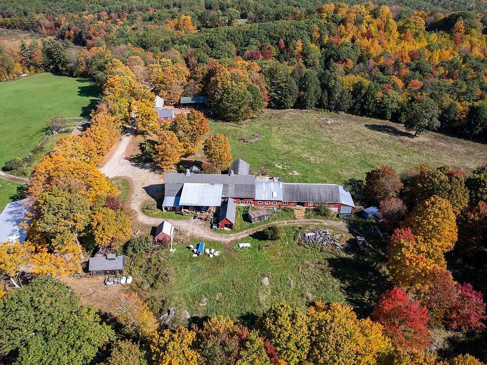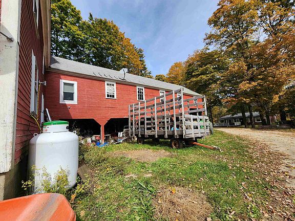 Lovely and roomy 1938 New Englander with open concept kitchen and living room, in SW NH has beautiful pine floors, spacious kitchen and living room, primary suite and a large 4 bay attached wagon shed, with potential for finishing to create additional living space, a workshop or storage. Called the Schoolhouse because of its past use the house has three sources of heat, a wood boiler, gas heat and wood stove. Set on a quiet back road, the 32 acre parcel includes a 98’x36’ dairy barn with finished, heated milk room equipped with gas stove, frig, shower and composting toilet, also a secured room previously used as a farm store. The sugar house comes outfitted with evaporators and other necessary equipment. It produces 300-400 gallons of syrup annually from taps on neighboring sugar bushes. A large 5 bay equipment barn is outback, as well as the wood furnace. In addition the former post and beam forge has been renovated and new wiring installed, the new slate roof needs a little finishing, it sits behind the barn and a small greenhouse resides behind the house. There is 5+ acres of managed hayfield, a brook, small sugar bush and open land around the barn. Conservation easement on a portion of the land. Bring the livestock, chickens and other ideas! Picturesque setting, a great primary or secondary home. Also offered under MLS #4933777 with additional land and buildings.