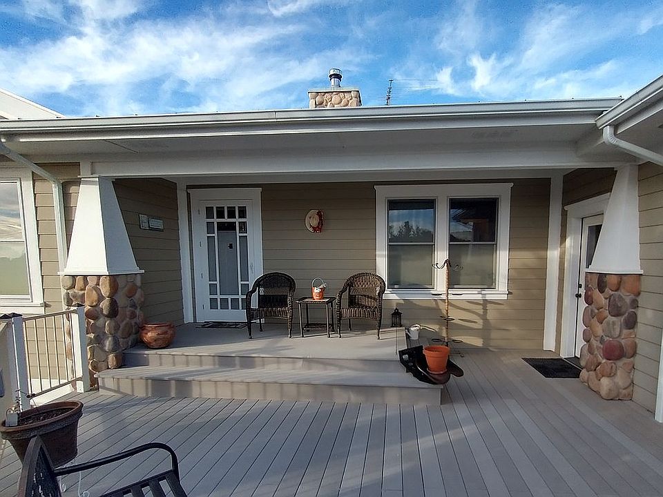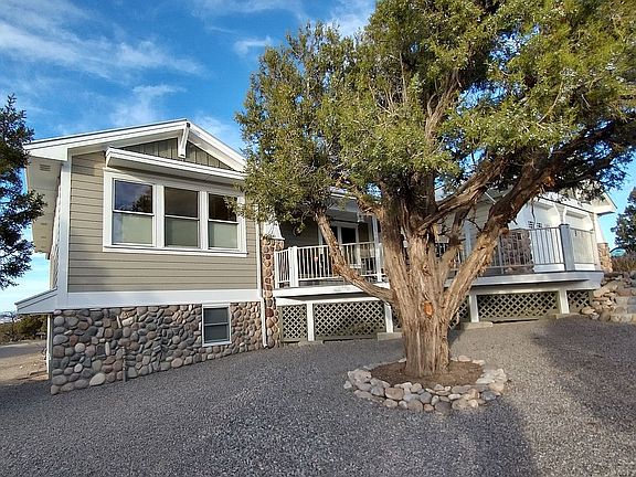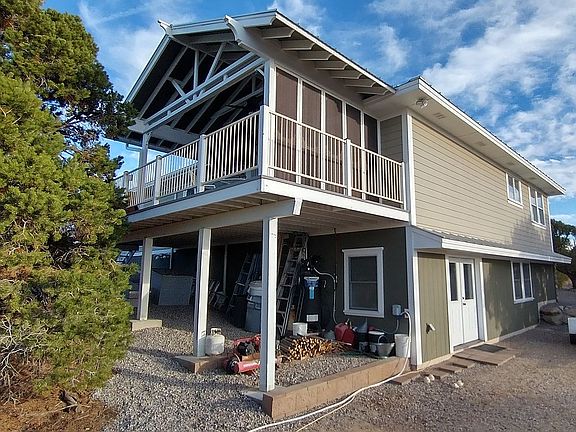 OFFER ACCEPTED--ACCEPTING BACK UP OFFERS Energy efficient Craftsman style home on county maintained paved road with great views of the mountains. Located in First Divide Subdivision which has protective covenants. 1802 sqft on main floor with 1095 sqft of finished walk out basement. Kitchen and bath cabinets are custom made out of cherry with inset mission style doors. Woodwork is done in craftsman style. Wood flooring is a engineered cherry wood. Ceramic tile is in the kitchen, dinning, baths and laundry. Large master suite with walk in closet with hamper that pulls out in the laundry and large shower and double sinks. Full bath has tub with shower with double sinks. The walk out basement has a walk in closet , a cold storage pantry, full bath with whirlpool tub - shower, also has a wet bar with cabinets. Tankless water heater supplies ready hot water to the faucets. Whole house air filtering system. Soft water unit is self owned. In floor heat in the entire home, with a wood stove in the basement and a pellet stove in the living room to help with the heating. Highly efficient evaporative cooling. Water is supplied by the city of Aztec. RV space with 120v 30 amp electric and sewer. Water is 40 feet away.