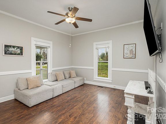 Charming single-story cottage with a rocking chair front porch, on a private and flat lot! With an abundance of natural light throughout, the kitchen has expansive counter space, ample storage; flowing into the open living area. Both bedrooms are complemented by nicely sized closets and intricate trim and moldings. Washer and dryer in laundry room are included. A wide driveway provides ample parking, while the spacious back deck overlooks an expansive and serene backyard! Welcome home! Turnkey to move in, or smart investment property!