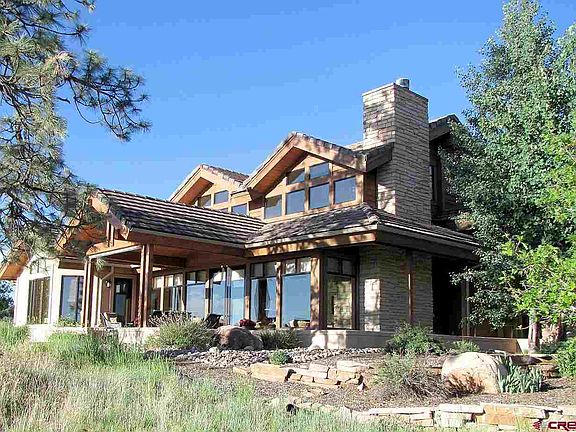 Spectacular panoramic views of The Needles, Lake Nighthorse, and all the way to Wolf Creek Pass from the walls of windows in this gorgeous custom home in prestigious Shenandoah Estates. The spacious Travertine foyer greets your guests & leads to the great room with cathedral ceiling & massive windows facing the views. The open floorplan includes: master suite on main level, open Chef style kitchen, spacious dining room and den. Impeccable design & execution For the most discerning of buyers.