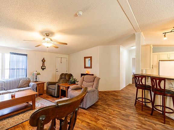 Amazing 3 bed 2 bath 2006 Fleetwood anniversary addition mobile home with an additional bonus room on almost 6 ACRES! The perfect open concept living/kitchen & dining area with split bedrooms. The kitchen boasts beautiful custom built cabinets, a bar AND an island. The master suite has two walk in closets, a built in gun safe, double sinks, walk in shower, garden tub AND the large bonus room is attached to the master. 2 1/2 of the 5.94 acres is cleared and fenced in with an automatic gate. Behind the home you will find a fully wired gazebo, 32x40 wired & plumbed open pole shed, 18x20 metal carport, 11x20 closed in shed, TWO wells, blueberry bushes & raised garden included. To top it off, the home is termite bonded, washer & dryer STAY, AND the roof was brand new in 2020 with a 25 yr warranty!! This is one you certainly don't want to miss out on!
