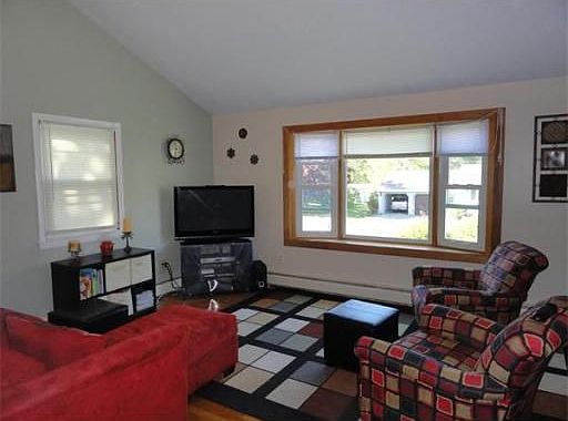 First showings at Open House Sunday May 5 12:00-1:30pm. Open kitchen and living room with cathedral ceiling. Master bedroom w/private deck. Newly remodeled bathroom, new replacement windows, new stove and dishwasher, new front door, newer hot water tank. Finished lower level family room with gas fireplace and finished exercise room with beautiful wood ceiling. Town sewer is available in street. Enjoy your private yard with mature landscaping and a deck and patio for entertaining.