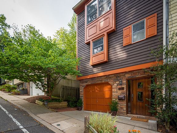 Stunning and meticulously maintained 3 bedroom, 31/2 bath contemporary townhouse with numerous amenities. Custom hardwood floors, cabinetry, and lighting throughout. This end unit backs to a wooded area and has two decks (one that is covered) where you can relax and enjoy secluded views of the Delaware River. All bedrooms have ensuite baths. The ground level bedroom could serve as an office with full bath and private entrance and deck. Midway up the south Franklin Street hill, it is the perfect location for walking into town while feeling slightly above it all in this quiet location. Attached garage and off-street parking make this townhouse a perfect home without the association fees. Easy commute to Princeton, Doylestown, Philadelphia, and trains to NYC.