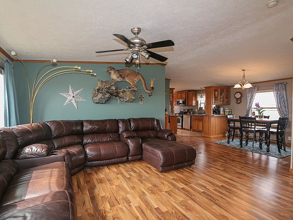 Looking for large 4 car garage! complete with concrete floor, 220 power, insulated and partial finished inside. Located on 6.69 acres with trees close to town. House features 5 piece master bath large walk in closet. Open floor plan features new flooring in living and dinning room. Move in ready right down to play set in the backyard! Call/text Chad Wernsmann (307)331-5569 www.buysellgillette.com