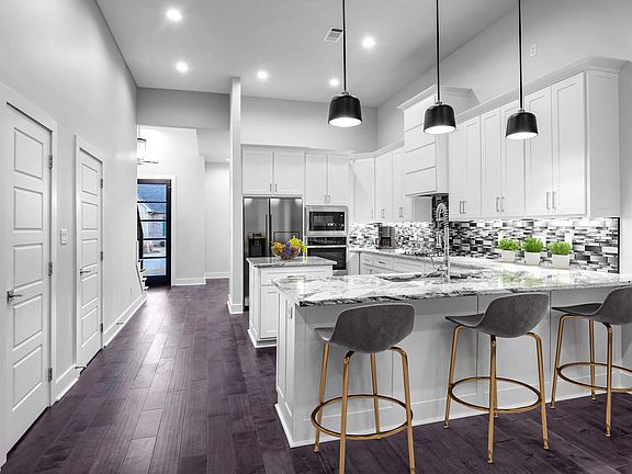 Privacy fence included! If you are looking for wow factor, look no further! Located in the premier Parkside at Wildwood community where you never have to mow again, this home is loaded to the max with fantastic upgrades and unique touches! Enjoy real hardwood flooring, expansive ceilings, large windows, custom cabinetry and so much more. Scenic views of mature trees from your covered porch and primary suite are added perks of this gorgeous home. Lawn maintenance is included with your yearly POA so sit back and relax and enjoy this meticulously designed home!