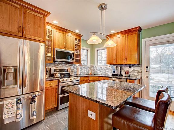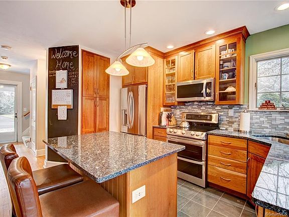 Fabulous 3 bedroom, 1.5 bath colonial perfectly located close to Simsbury center. This home boasts the charm of original wood molding, dining room-corner Built-in cabinet, and solid construction. A brand new modern Kitchen with lots of efficient features makes it a dream to cook in and entertain. Spacious, sunlit dining room leading to a cozy living room and hardwood floors throughout. A huge rear level lot is completely fenced, with more than enough space to add a pool, garden or sport area. Also boasts a blue stone patio and fire-pit to enjoy fun summer evenings outside. Maybe you'll enjoy lounging in rockers on the front porch enjoying the sunset. Updates include, but not limited to, nest door locks, all light switches voice activated via Alexa, tiled-baths, newer windows, Buderus high-efficiency boiler w/indoor/outdoor reset, newer twin oil tanks, wired for generator & green insulation. Basement laundry area with lots of stoarge & walk-up attic. Walk or bike to schools, award-winning town center with Simsbury Meadows State-of-the-Art Outdoor Venue (Summer Home Hartford Symphony), restaurants, shopping, Hopmeadow CC, Memorial Pool & ball fields. Perfect location! Make it yours today!