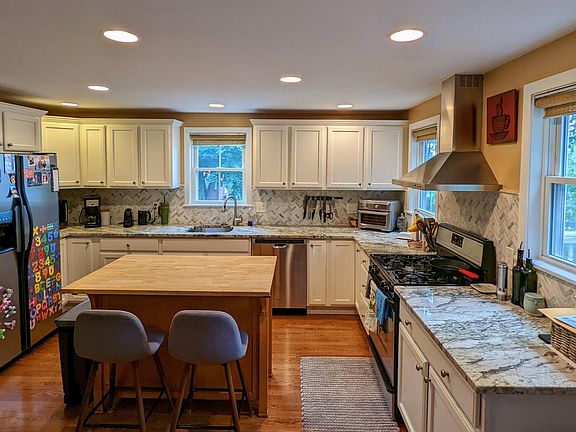 No broker fee! Stunning sun filled farmhouse colonial (2100+ sq. ft.), on a corner lot with a private, fenced in backyard. 3 bed, 3 bath, heated 2 car garage, newly renovated modern white kitchen with granite and stainless steel appliances. Hardwood floors throughout the main living area with an open floor plan, a gas-lit fireplace in the family room and easy access to a spacious deck overlooking a landscaped backyard, ideal for entertaining guests. Mahogany farmers porch in front with a swing. Beautiful master suite w/ tray ceiling, master bath w/ 2 person rain shower, double sinks, marble and ceramic tile flooring. Plenty of storage space in the garage, mud room and attic. Easy access to I-95, Rt 2, Mass Pike and walking distance to Douglas MacArthur elementary school and Pizzi Farm. Pets negotiable with an additional fee. First Floor: Kitchen (Modern, white with stainless steel appliances, newly renovated), Family Room (Warm, inviting with a gas lit fireplace), Dining Area (Open floor plan, flows nicely for entertaining), Large Bonus room (with french doors, can function as a study/kids play area/guest bedroom), Bathroom (Large tiled shower with a rimless glass door, toilet, vanity), Large pantry with plenty of shelving, hardwood floors throughout, walkout to deck and backyard. Second Floor: Bedroom 1 (Master bedroom with a walk-in closet and another large closet, both with custom shelving), Master Bathroom (Very spacious with two person rain showers and double vanity), Bedroom 2 (Currently setup as a kids room, with a cute wall mounted chalkboard and folding study table, closet with custom shelving ), Bedroom 3 (Large bedroom with a walk-in closet), Linen Closet, Bathroom 3 (Spacious bathroom with a bathtub). Basement and Garage: Heated 2 car garage, opens into a mud room with a spacious shoe and coat closet, laundry room with a sink and shelving, utility room with a new water heater. Deck and Backyard: Large deck overlooking a private fenced in backyard featuring a stone patio and a vegetable patch. Beautiful mood lighting installed on the deck, perfect for hosting family and friends! Please submit a rental application or provide a credit report to schedule a tour. Tenant pays utilities (water, electric, gas) and takes care of snow removal and lawn maintenance. Landlord will take care of annual spring cleanup and sprinkler maintenance. Due at lease signing: 1st month's rent, last month's rent and security deposit.