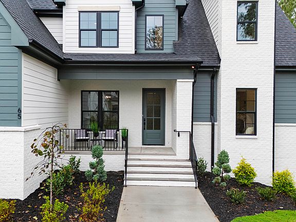 Custom shaker-style cabinetryCrown moldingZero-entry tile showerBuilt-ins with detailed trimSpacious screened porchBlack guttersDual vanities
