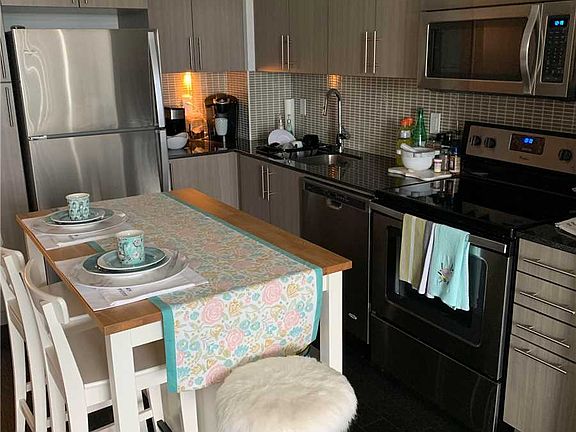 Rain Condo. 1 Bed 1 Bath. High Floor. 9Ft Ceilings. Spacious Open Concept With 2 Walkouts To Balcony. Unobstructed North West View. Stainless Appliances And Quartz Counters. 1 Parking And 1 Locker Included. Full Amenities: Indoor Pool, Sauna, Whirlpool, Exercise Room, Games Room, Party Room, 24 Hr Security, Rooftop Terrace With Bbq, Car Wash, Pet Wash, Guest Suites. Easy Access To Qew And Go Train Station.