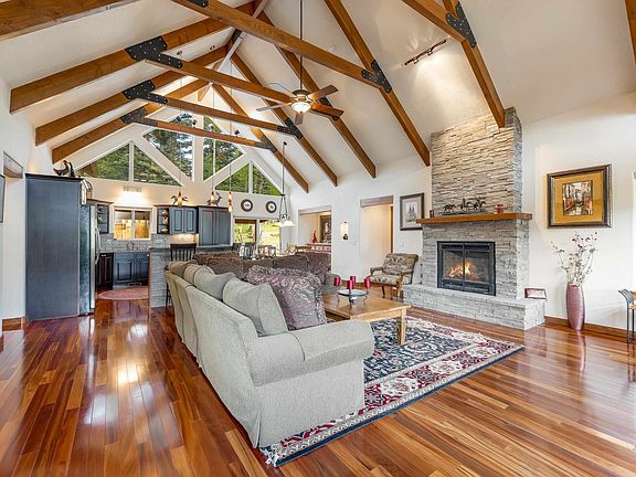 Sitting amongst beautiful mature pines and aspens at the end of a quiet road, 65 Starshine Overlook is your home away from home. With sweeping views of the mountains and the Valley of the Utes, this immaculately cared-for home offers both serenity and style. The open-concept living and kitchen area is bright and breezy, with vaulted ceilings and expansive windows that flood the space with natural light. The private primary suite is a true retreat, complete with a spacious ensuite bathroom featuring a walk-in shower and a large soaking tub. Two well-appointed guest rooms are located on the opposite side of the main level, along with a full bath and a conveniently placed laundry room. A second den above the two-car attached garage offers versatility as an office or additional sleeping quarters. Step right outside to the wraparound covered deck, a perfect spot for gathering year-round. Just a 10-minute drive from the slopes, trails, and shops of Angel Fire Resort and the village, this mountain getaway blends comfort, privacy, and proximity to all the area has to offer.