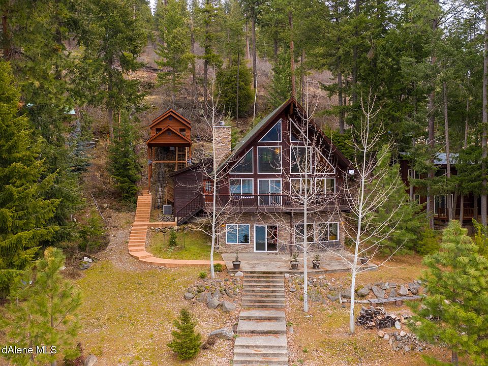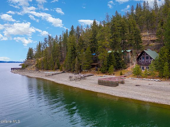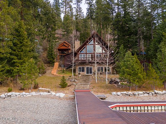 IDYLLIC WATERFRONT RETREAT ON LAKE PEND OREILLE. Situated on the shores of Bottle Bay with 100' of PRIME frontage, this FULLY-FURNISHED lake cabin with BOAT & WATER TOYS INCLUDED will not disappoint! The main level includes a large master suite, open kitchen, dining and great room w/wood-burning fireplace, vaulted T&G ceilings, bonus loft area and incredible lake views. Game room w/walkout to back patio, two bedrooms and a shared bath on the lower level. $100k in recent upgrades including tram/covered entry stairs, new exterior stain, wave-break rocks on shoreline and more. Private dock, ample outdoor living spaces and serene surroundings. Only 30 minutes to nearby Sandpoint. An absolute MUST SEE!!!