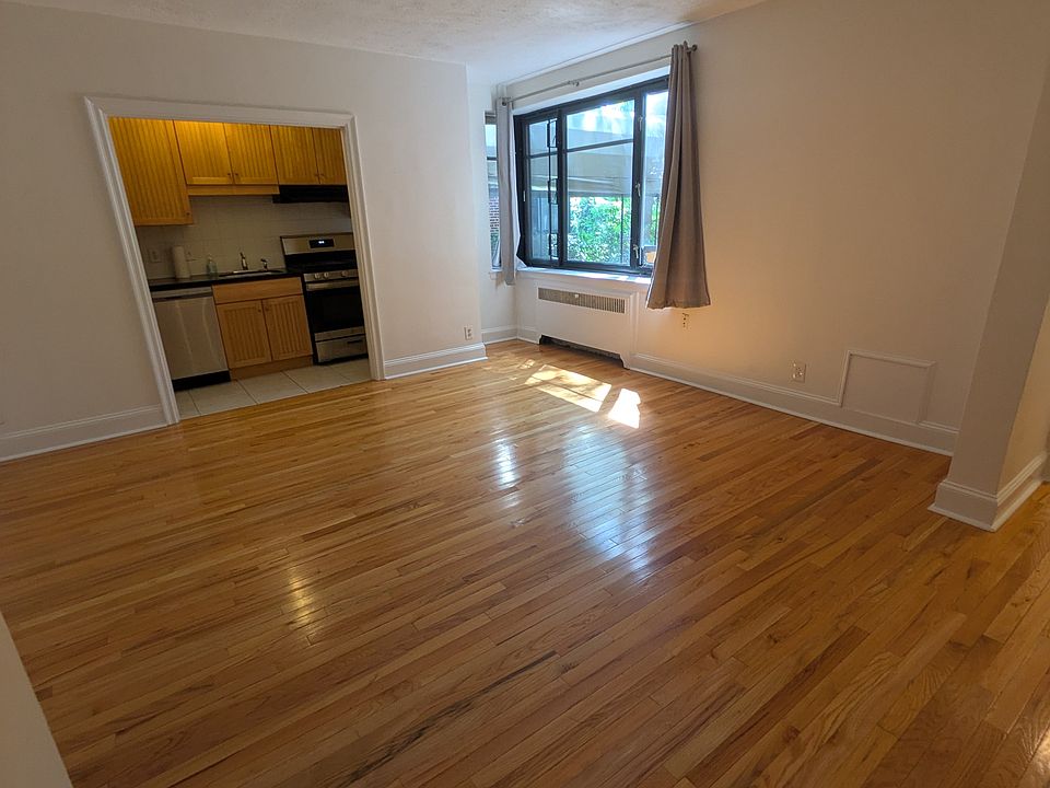 Still available! Fresh paint & ready for move in! Spacious and sunny 1 bed unit on Strathmore Rd. in Brighton, close to the B, C, and D lines and less than 1/4 mile to Cleveland Circle. Enter into a large living room with big windows and room for a table and chairs. Kitchen has dishwasher & disposal with newer cabinets and granite counters. Hardwood floors throughout, bright and sunny! Large bedroom with a big closet and renovated bath. Heat & hot water included in the rent. Great location on a quiet road but super convenient to multiple green line trains, Brighton Center, and Washington Sq. nearby. Cleveland Circle is right outside your door with tons of shops & restaurants, and the Chestnut Hill Reservoir walking & bike paths. Video tour available! Heat & hot water included, tenants pay for electric. Coin op laundry in building.