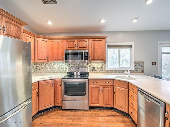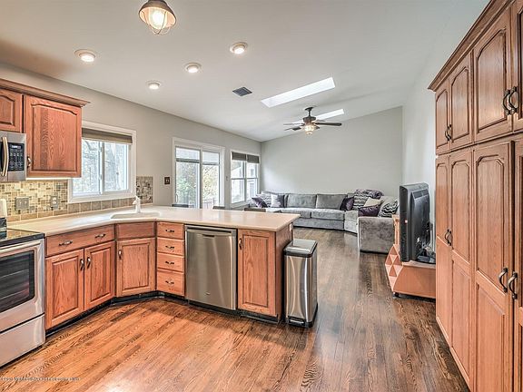 Beautiful expanded ranch sitting on a quiet street and backing to the woods. Imagine sitting in a rocking chair on the rear paver patio or better yet sitting in the backyard oasis by your GAZEBO overlooking your 3 tiered koi pond, waterfall, and walkover bridge! This updated ranch boasts recently refinished hardwoods floors throughout. This home includes a large addition in the rear which contains a den, vaulted ceilings, skylights, and a newer kitchen containing stainless steel appliances, Corian counter tops, and ceramic tile back splash. There is also a spacious living room and dining room containing a wood burning stove and updated guest bathroom. There is also a spacious living room and dining room containing a wood burning stove and updated guest bathroom.