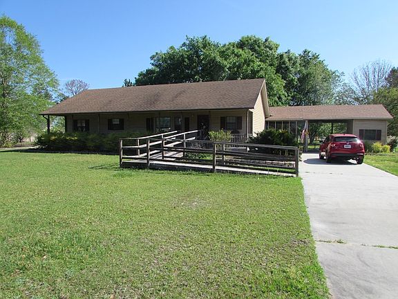 Priced to sell quickly! You'll instantly fall in love with this home. The kitchen is very nice with solid surface countertops. A beautiful sun room on the back opens to a large master bedroom with ensuite bath. The other two bedrooms are down the hall past an additional full bath. A nice sized indoor laundry room. There is a large screened back porch as you come in from the carport. A portion of the backyard has a chain link fence with 2 gates. There's a workshop/storage room alongside the carport. Kitchen and laundry appliances will stay with the house. The backyard is shady and breezy with plenty of privacy. Pretty flowers all around the full acre. Termite barrier has been maintained. The home is an estate and family wants to sell quickly. This is your opportunity to get a great home.