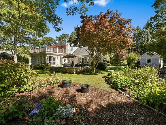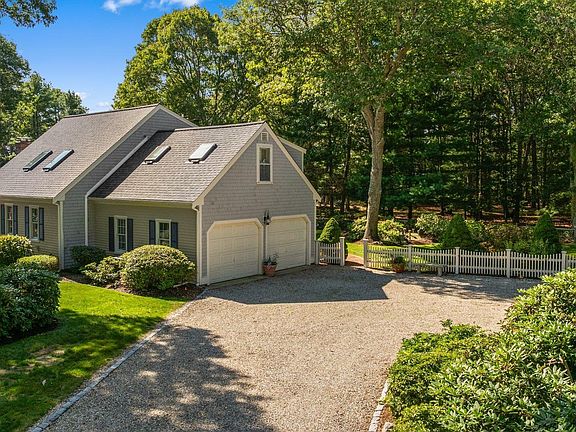 Tucked away in the serene Cotuit Coves neighborhood of Cotuit, this timeless Cape Cod home offers the perfect blend of charm, comfort, and convenience. Set on nearly half an acre of beautifully landscaped grounds, the property provides privacy and tranquility with mature trees and lush plantings that invite you to slow down and enjoy each day. The home is thoughtfully designed for relaxed living and entertaining. A bluestone patio surrounded by stone walls creates an inviting space for morning coffee or evening cocktails, while the spacious second-floor deck ensures effortless indoor-outdoor enjoyment. Inside, sun-filled rooms with vaulted ceilings, exposed beams, and skylights create an airy, welcoming atmosphere. The heart of the home is a chef's kitchen with top-tier Wolf appliances and a breakfast bar - perfect for casual meals or entertaining friends. The adjoining fireplaced living room and dining area provide a warm setting for family gatherings or quiet evenings at home. The convenience of a first-floor primary suite means you can enjoy single-level living every day, while guests and family will appreciate the two additional bedrooms, full bathrooms, den, and bonus room upstairs. Additional comforts include an attached two-car garage, outdoor shower, and garden shed - all designed for easy, low-maintenance living. Just steps from the Crocker Neck Conservation Area and minutes from Cotuit Village, Willowbend, and Mashpee Commons, this home places you close to scenic walking trails, golf, dining, and shopping. Whether you're looking for a peaceful year-round residence or a seasonal retreat, this property offers the ideal setting to enjoy the Cape lifestyle at its very best. The information contained herein has been obtained through sources deemed reliable but cannot be guaranteed as to its accuracy. Buyers are encouraged to do their own due diligence through independent verification.