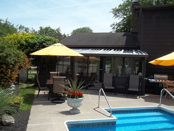 Vacation at home.. it's all here! Immaculate 2,000 sq ft, 3 bedroom, 2.5 bath colonial and former model home w/ many extras. Home features formal living room, dining room, family room w/ gas fireplace, spacious master suite w/ walk-in closet, 1st floor laundry, rec rm, office, security system and in-ground sprinkler system. Beautiful 3 season room that walks out to a private 18x36ft in-ground pool, patio and lush landscaping. Two car garage w/ built-in storage shed. Roof, furnace, central air, pool liner all within last 10 years. Great location in a desirable and sought after neighborhood near x-way and shopping.