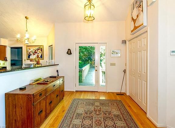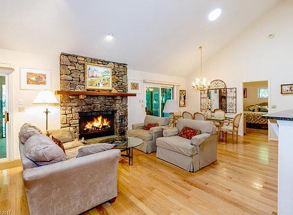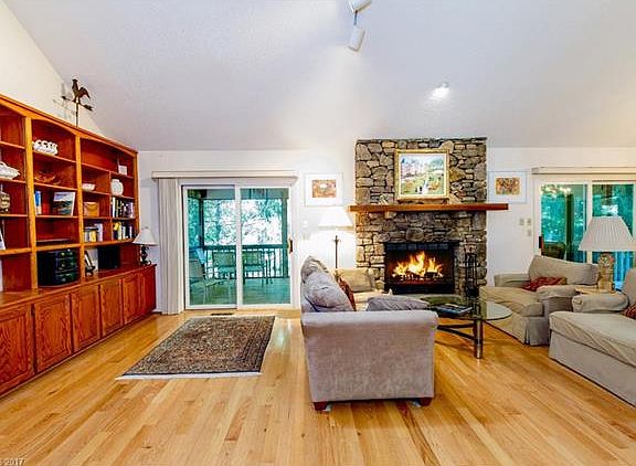 A welcoming light & bright home backing to 18th hole on cul-de-sac street. 3BR, 2BA, GR w/stone FP, cathedral ceilings, 1 level living, open floor plan, h/w floors throughout, granite countertops, cherry cabinets, oversized 2 car garage, great storage & radon system. Enjoy a private setting spring, summer & fall on the large screened deck. 2 extra rooms downstairs w/air conditioning & heating. Great location for walking. New roof & HVAC. Close to EF gate, club house & Lake Atagahi. CF UAF $8,000