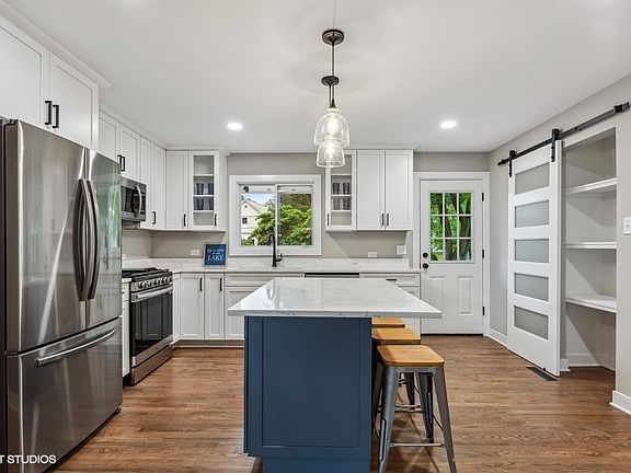 Don't miss your chance at this beautifully renovated 3 bedroom 1 bath ranch home on a nicely sized lot in a quiet cul de sac. A spacious living room opens widely to but is still separate from the brand new white kitchen with a gorgeous blue island and veined quartz countertops, a spacious pantry, and new appliances. Completely updated full bath with stylish hex tile flooring, double vanity and tub/shower combo. Hardwood floors throughout. Full basement that can be used as is or easily finished with lots of room for additional living space and storage. One car garage and long driveway. A perfect Crystal Lake location, close to Rte 14, Crystal Lake, downtown restaurants and shopping, Metra, walking distance to elementary and middle school.