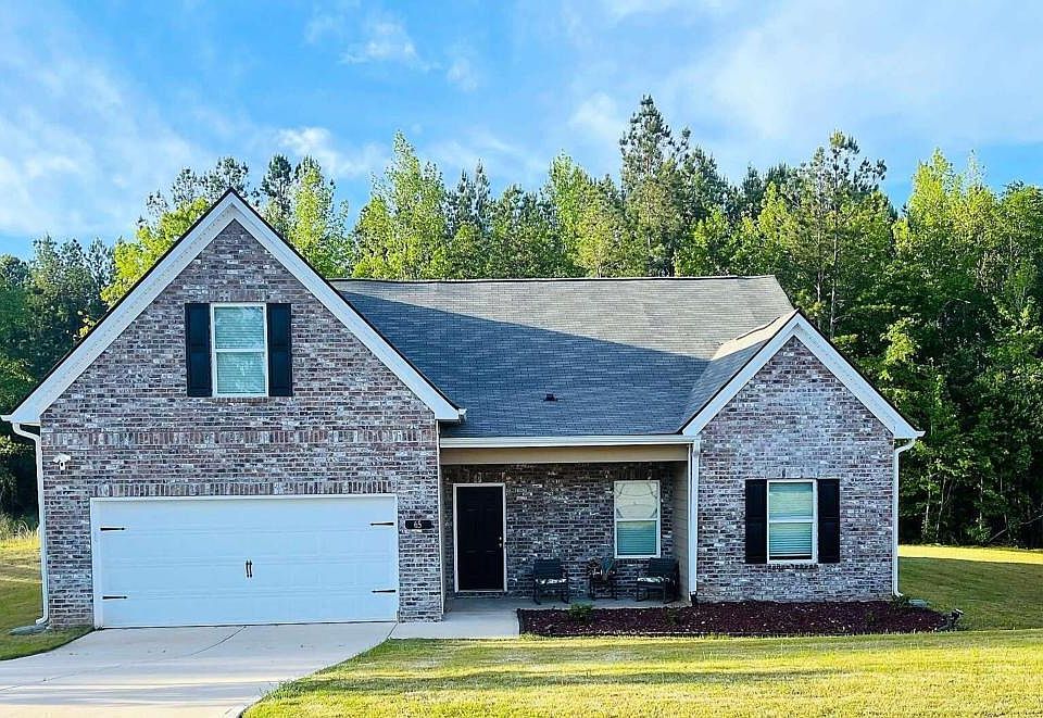 Great home built in 2021 with brick front and open floor plan with hardwood flooring and awesome level backyard. Large kitchen with stainless appliances, granite countertops, stained cabinets, island with breakfast bar and built in microwave. Spacious great room with wall of windows, ceiling fan, vaulted ceiling and access to a backyard patio which is perfect for grilling and cookouts. Large master bedroom with ceiling fan, large walk-in closet, and private bathroom that features double vanity, granite countertop, separate shower, and soaking tub. Spacious secondary bedrooms with great closet space. Awesome bonus room above the garage that works well for a bedroom, office, movie room, game room, or kids playroom. Awesome backyard perfect for a swimming pool and vegetable garden. Great community and donCOt miss this two year old house that's still very new.