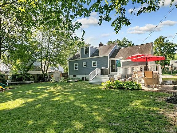 Adorable cape nestled in one of North Havens most highly desirable neighborhoods sought after Ridge Road School district. Fenced in backyard oasis and indoor open floor plan make for easy entertaining. As you enter the front door you'll fall in love with the open landscape of a remodeled kitchen with granite countertops, eat in bar and large basin sink. Along with the dining area with fireplace and living room with cathedral ceiling and slider to outside freshly painted deck! Two adaptable bedrooms and a updated full bath with jetted tub complete the first floor. Two spacious bedrooms with large closets and full updated bathroom on second level. Second floor can be a large master suite if one desires. Partially finished basement with a versatile extra bonus room. Plenty of storage in the unfinished side of the lower level as well as laundry. Environmentally responsible with new vinyl siding, windows, and natural gas furnace (only used for one season!!). Make your appointment today! Only 5-7 mintues to Merritt Prky or I-91...just over an hour drive to New Rochelle NY. This commute can work! This property does have central air, however it doesn't work the best. Condenser is older and will probably be needing replacement soon. Being sold in as-is condition.