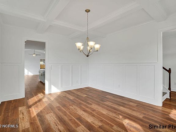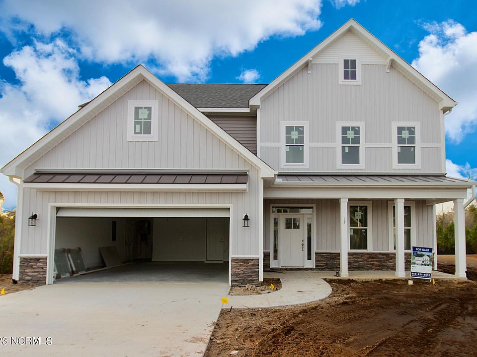 Wow! Over 1/2 acre lot with water and sewer in The Sanctuary at Forest Sound! Move in, in early 2023 into The Hall Crest, from award winning builder, Hardison Building. The rocking chair style front porch immediately welcomes you and makes you feel right at home in this open 4 bedroom, 3 and ½ bath, 2-story home. This Hall Crest has a bright and spacious living area featuring ceilings with beam accents and natural gas fireplace flowing seamlessly to the kitchen, breakfast area, sitting room and large covered porch overlooking the private backyard. This kitchen will wow you with the large center island, quartz countertops, tile backsplash, stainless steel appliances, including natural gas stove and pantry! The first floor is complimented by a formal dining area with beam accented ceilings, drop zone area off the 2-car garage and ½ bathroom. Upstairs there is plenty of room for all! The master suite features a trey ceiling, walk-in closet leading to additional storage, and a spacious bathroom with fully tiled walk-in shower, water closet and two vanities with quartz countertops. 3 guest bedrooms, 2 additional bathrooms, and a laundry room complete the 2nd floor. Additional features include wide plank laminate flooring throughout the 1st floor living area, wood stair treads, natural gas hot water heater, quartz countertops in all bathrooms and sodded and irrigated front and rear yard. The Sanctuary at Forest Sound is centrally located in the heart of Hampstead. 15 minutes to Wilmington or Surf City/Topsail and just 1 mile off the Intracoastal Waterway. Future boat and RV storage area. All options and completion dates are subject to change. Completed pictures are of a similar home. Please contact the community agent for details on selected finishes.