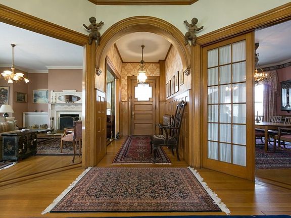 A 'Bar Harbor Cottage Style' Victorian, the Smith House, is located on West Broadway - the street where the lumber barons built their homes. Situated in a convenient in-town location with an acre of lovely landscaping and perennial gardens, this house has an updated kitchen and bathrooms, but the integrity of the Victorian architecture has been preserved with magnificent millwork, curved walls, lovely built-ins, beautiful floors and stylish period lighting. It has 6 bedrooms, 8 working fireplaces, 3 full bathrooms, 2 half bathrooms and is heated by natural gas with an on-demand hot-water heater.